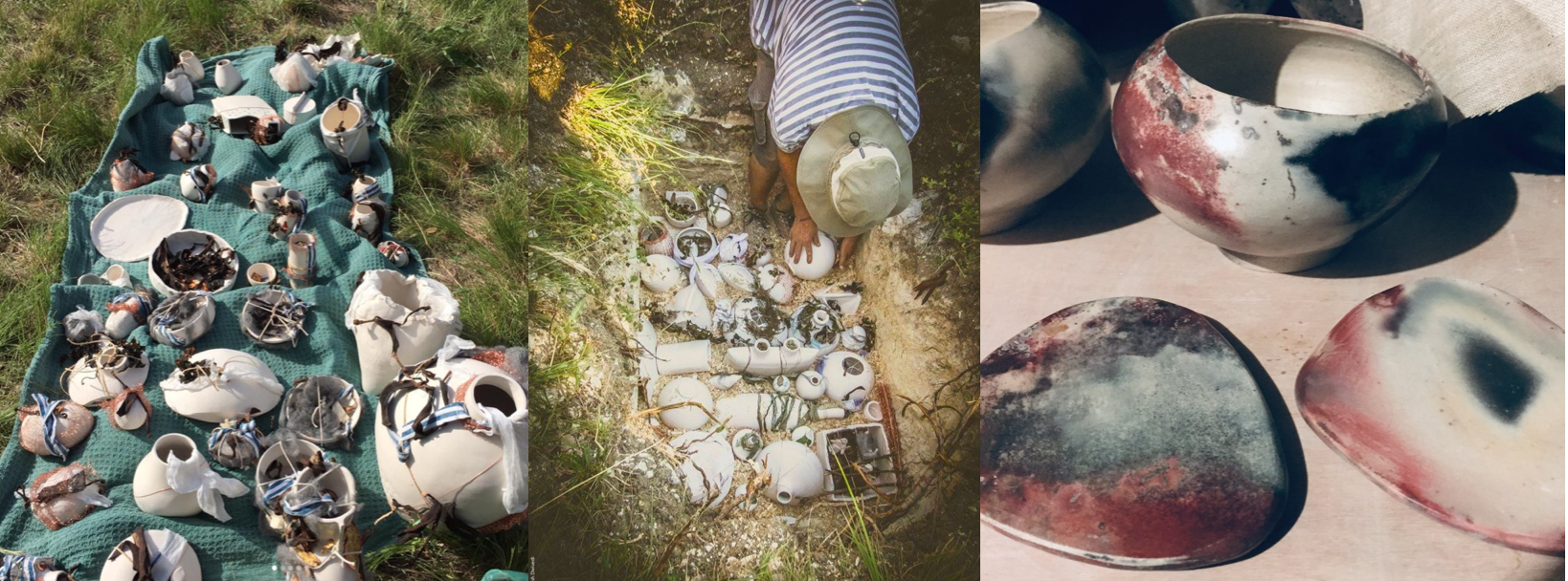 Stage RAKU (avec glaçures, raku nu, et dépôts végétales)